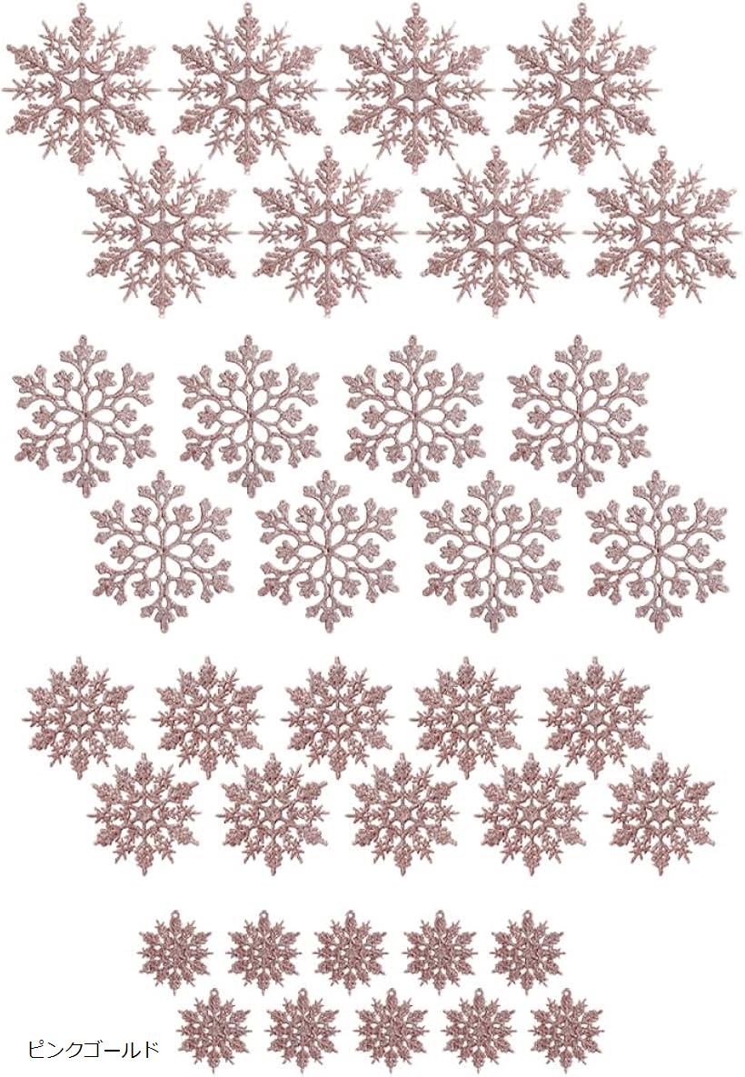 クリスマスツリー オーナメント スノーフレーク 雪の結晶 飾り付け 装飾 セット ピンクゴールド (ピンクゴールド, フリーサイズ)