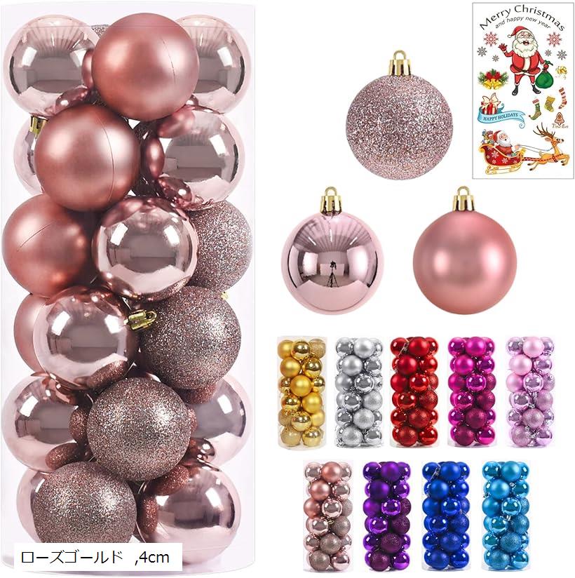 クリスマス オーナメント 飾り ツリー ボール 24個 全9色 タトゥーシール セット (ローズゴールド, 4cm)