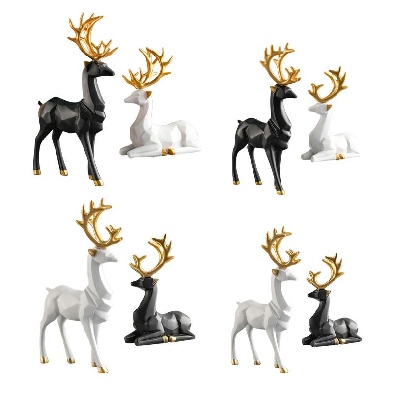 2パック彫像置物鹿の恋人の彫刻本棚の装飾