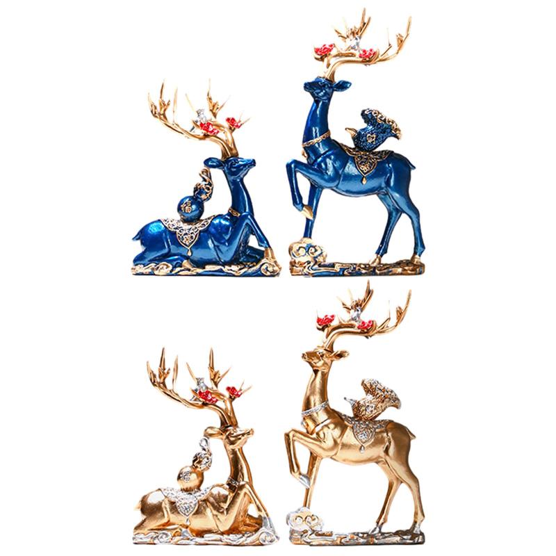 2 個トナカイ彫刻ヘラジカ樹脂像アート装飾コレクション動物フィギュア鹿カップル置物暖炉卓上