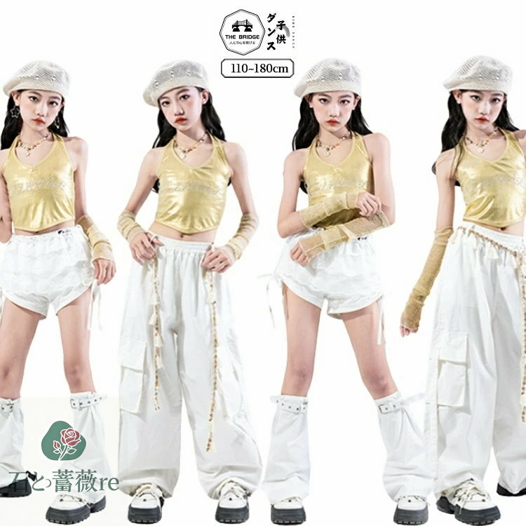 セットアップ 女の子 ジュニア ダンス衣装 ストリート ジャズ 韓国 薄手 ノースリーブ ショートパンツ 綿混紡 2点セット 夏