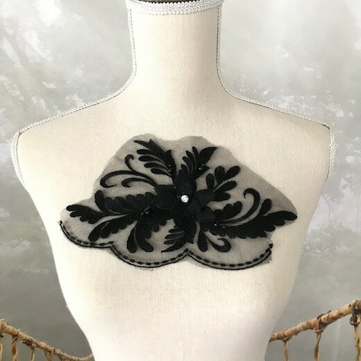 ネックラインモチーフ バラモチーフ 襟レース ネックライン 薔薇模様 シルバー グレー 装飾 レオタード バレエ衣装 新体操 服飾