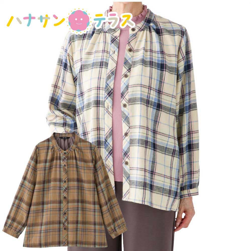 背キルト格子柄シャツ ブラウス M L シニアファッション 70代 80代 90代 アクティブシニア 100歳 レディース 婦人 用