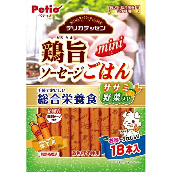 【3個セット】 ペティオ デリカテッセン 総合栄養食 鶏旨 ミニソーセージごはん ササミ野菜入り 18本入