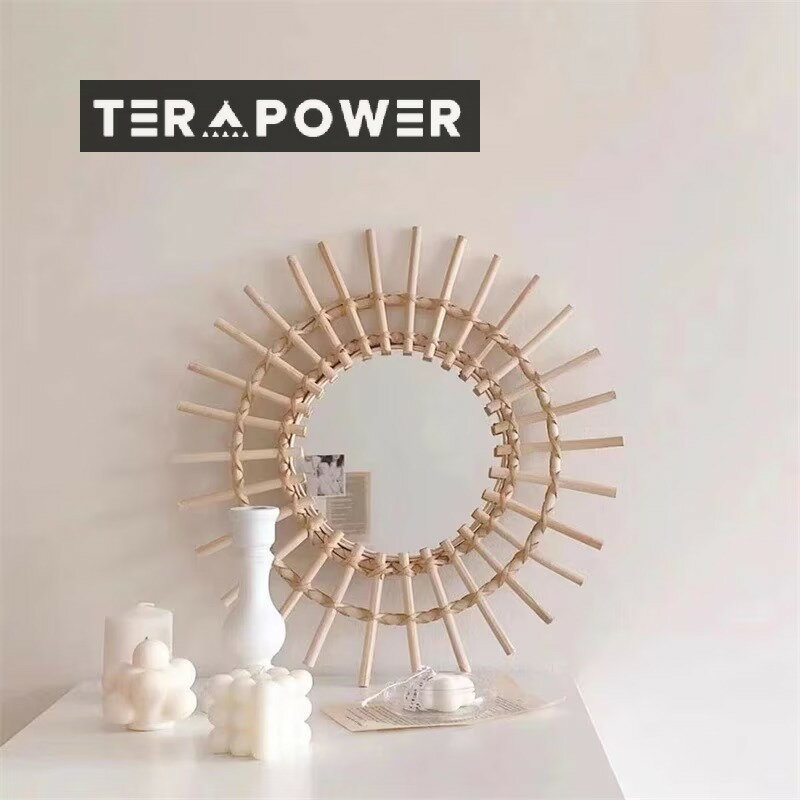 ラタンフラワーミラー ミラー 丸型 鏡 壁掛け 韓国インテリア 北欧風ミラー おしゃれ SNS大人気