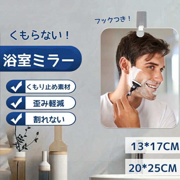 2 13cm×17cm ミラー お風呂鏡 鏡 お風呂 浴室 風呂 浴室鏡 貼る 割れにくい 歪まない くもらない 浴室ミラー くもり止め