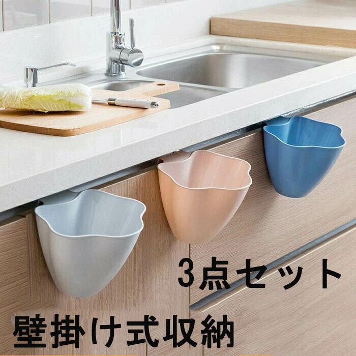 壁掛けゴミ箱 アイデア 3点セット おしゃれ スリム キッチン ぶら下げ 大口径 ごみ箱 ダストボックス 生ごみ 3色