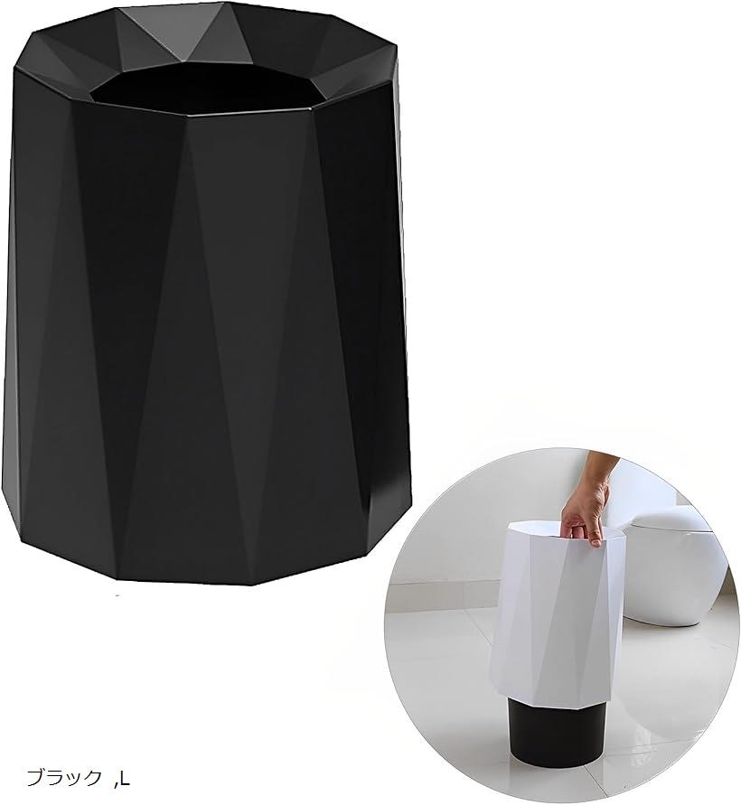 ゴミ箱 蓋なし二層式 北欧風 袋が見えない リビング バスルーム 寝室 キッチン オフィス コンパクト おしゃれ(ブラック, L)