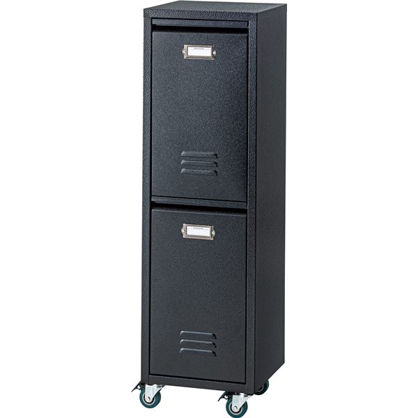 ゴミ箱 ダストボックス 幅28cm 2段型 ブラック キャスター付き 移動便利 スチール 組立品 キッチン 台所 店舗 (代引不可)
