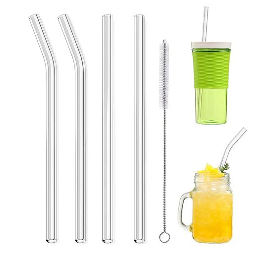 KALOLINNAガラスストローガラス製耐熱再利用可能安全無毒環境に優しい洗浄ブラシ付き4本セット