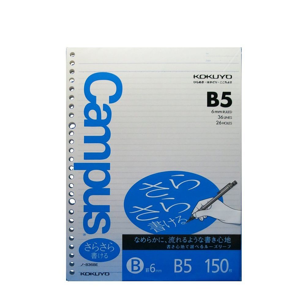 【メール便発送】コクヨ キャンパス ルーズリーフ さらさら書ける B5 B罫 150枚 ノ-836BE 【代引不可】