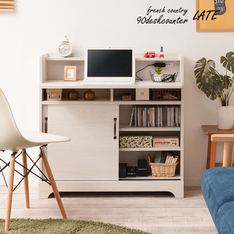 ・クーポン祭り開催中 カウンター下収納デスクキャビネット 幅90 ホワイト木目色 BAN2
