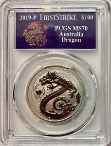 2019 オーストラリア 1 オンス プラチナ ドラゴン PCGS MS-70 ファースト スライク