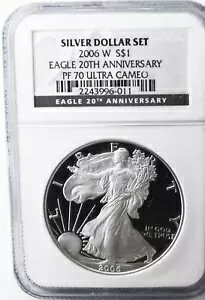 2006 W $1 アメリカン シルバー イーグル NGC PF70 UC シルバー ダラー セット 20 周年記念
