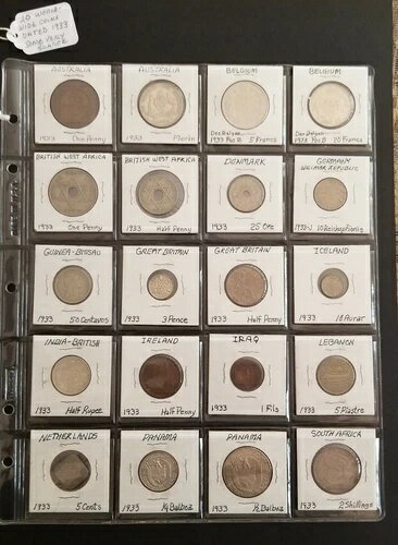 1933 年発行の世界共通コイン 20 枚。非常に希少なものも**カタログ値は 700 ドル以上!!!!