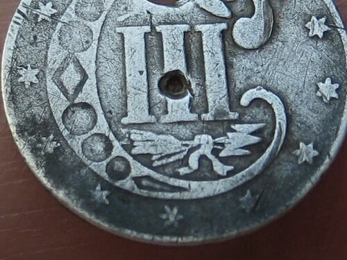 1861年 3セント銀貨 トリム 3CS- タイプ3、VG/美品