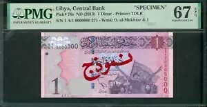 リビア ND (2013) P-76s PMG スーパーブ ジェム UNC 67 EPQ 1 ディナール (標本)