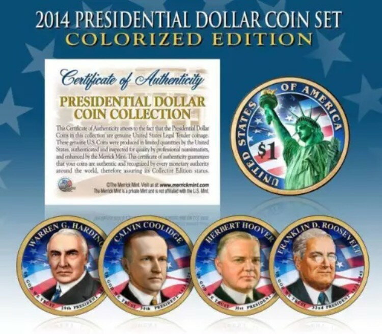 2014年大統領1ドル硬貨(カラー化済み)4枚セット(カプセル付き)