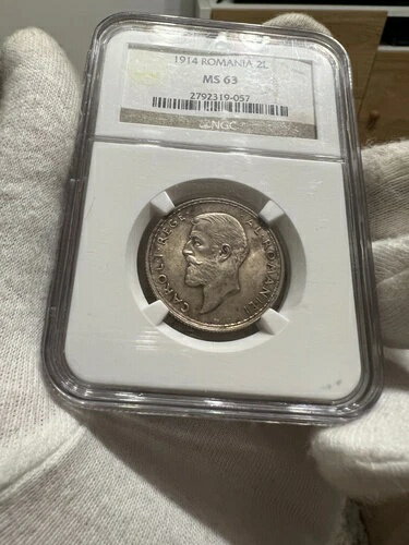 2レイ 1914年 ブリュッセル造幣局、銀貨、ルーマニア NGC MS63