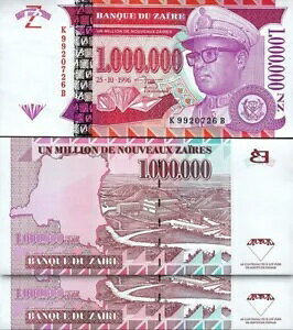 ザイール 1,000,000 1000000 100万ザイール 1996年、UNC、2本ペア、連続、P-79