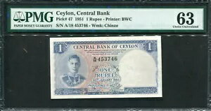 セイロン 1951、1 ルピー、P47、PMG 63 UNC