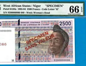 W.A.S /コード H ニジェール標本 2500 FRS-1992-P.612Hs **PMG 66 EPQ GEM UNC*トップ ポップ*