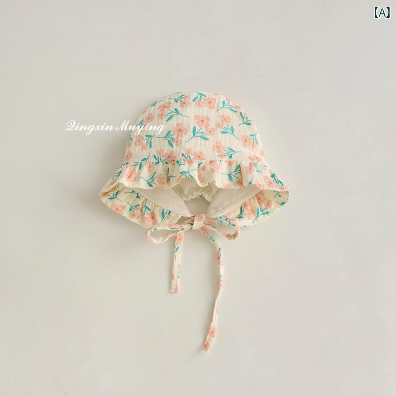赤ちゃん用 帽子 かわいい 柔らかくて かわいい 韓国 木製 耳 飾り 帽子 ベビー 春風 女児 綿糸 保護 ヘッド ハット