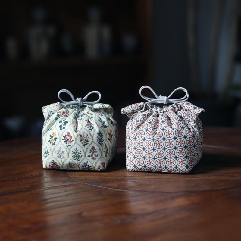 茶器 旅行 携帯 収納ポーチ 布製 急須 湯呑み 公道杯 和モダン 田園風 巾着 ピクニック アウトドア バッグ ドット 花柄(x2)