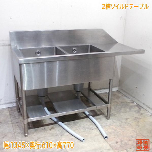 ステンレス 2槽ソイルドテーブル 1345×610×770 食器洗浄機専用 中古厨房/25C2627Z
