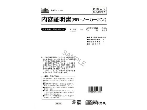 日本法令 内容証明書 B5 3組入 契約12-3N 内容証明 総務 庶務 法令様式 ビジネスフォーム ノート
