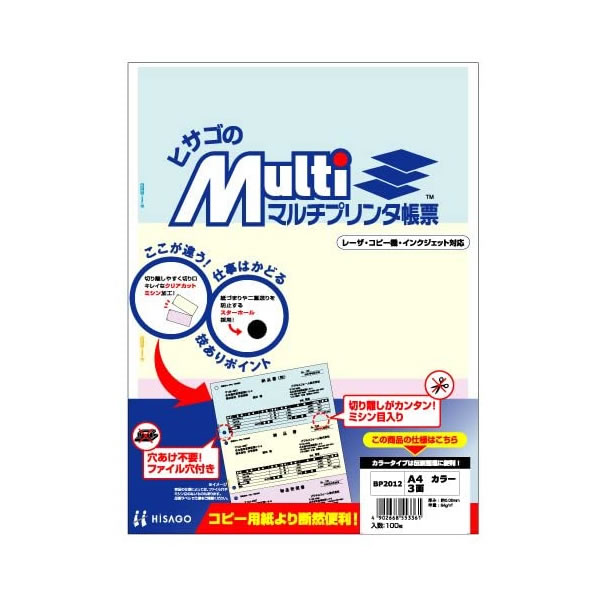 ヒサゴ/マルチプリンタ帳票 A4 カラー 3面 (BP2012) 100枚 HISAGO