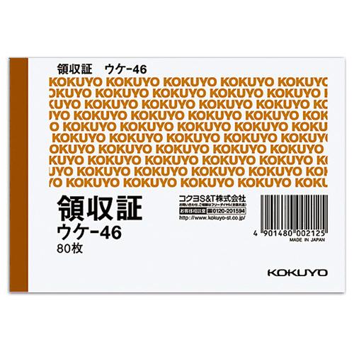 領収証 B7横 2色刷80枚 品番:ウケ-46 注文番号:51645281 メーカー:コクヨ