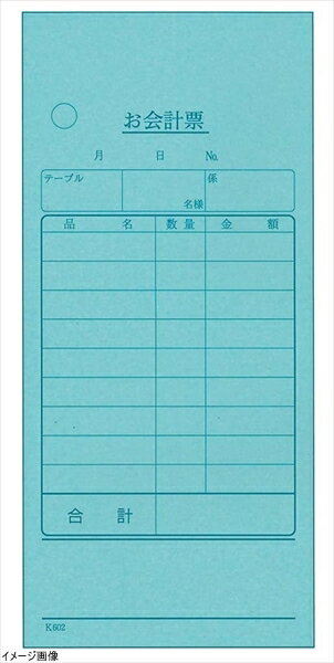 会計伝票 レストラン・居酒屋用 2枚複写 K605 (50枚組・20冊入)【伝票紙】【業務用】