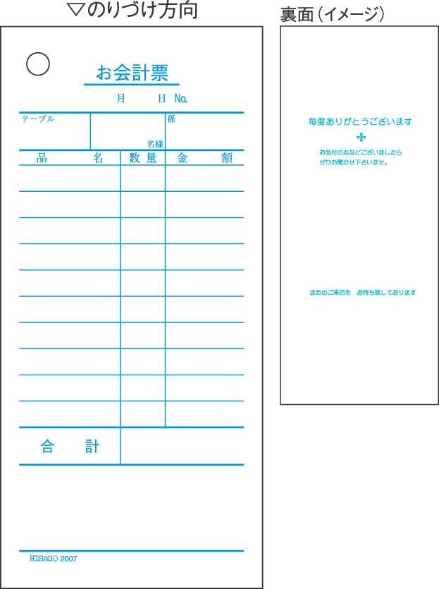 ヒサゴ お会計票 大入り 単式 2000枚 2007E
