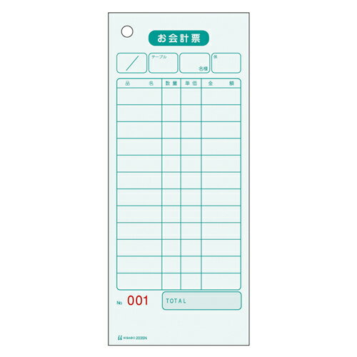 ヒサゴ お会計票 複写枚数:単式 【2035N】