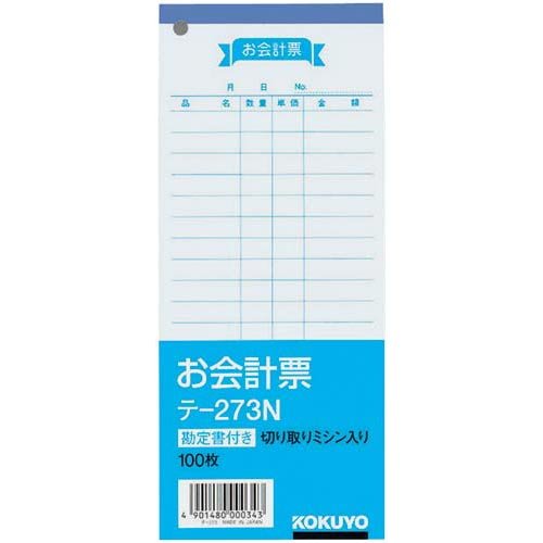 単式 会計伝票 K404Nナンバー入り(100枚つづり20冊)コーヒー【伝票】【会計表】