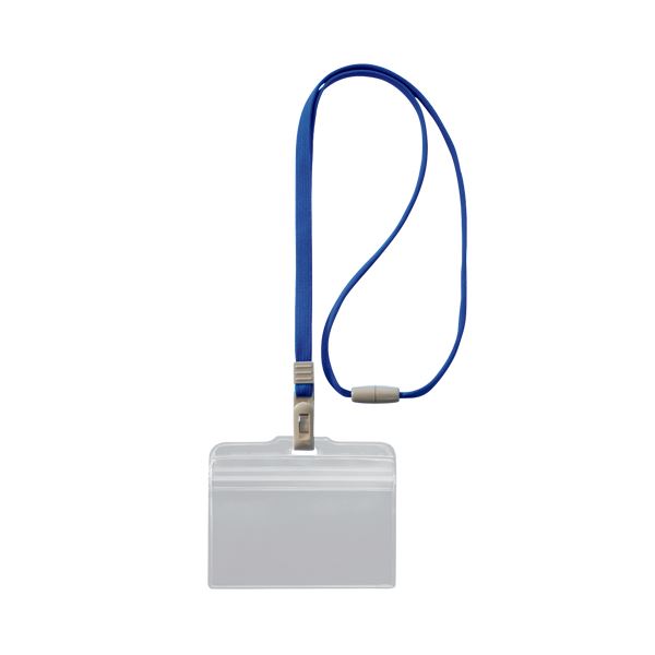(まとめ) ライオン事務器 つりさげチャック式名札ヨコ型 ソフトタイプ 平ひも ブルー N-77CR 1個 【×30セット】