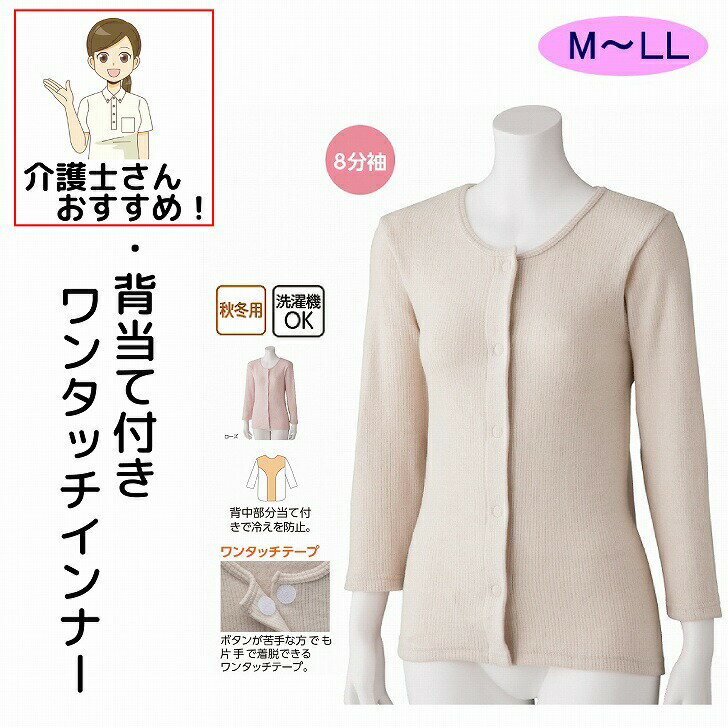 女性用介護肌着(婦人七分袖式ワンタッチテープ式シャツ)フライス編