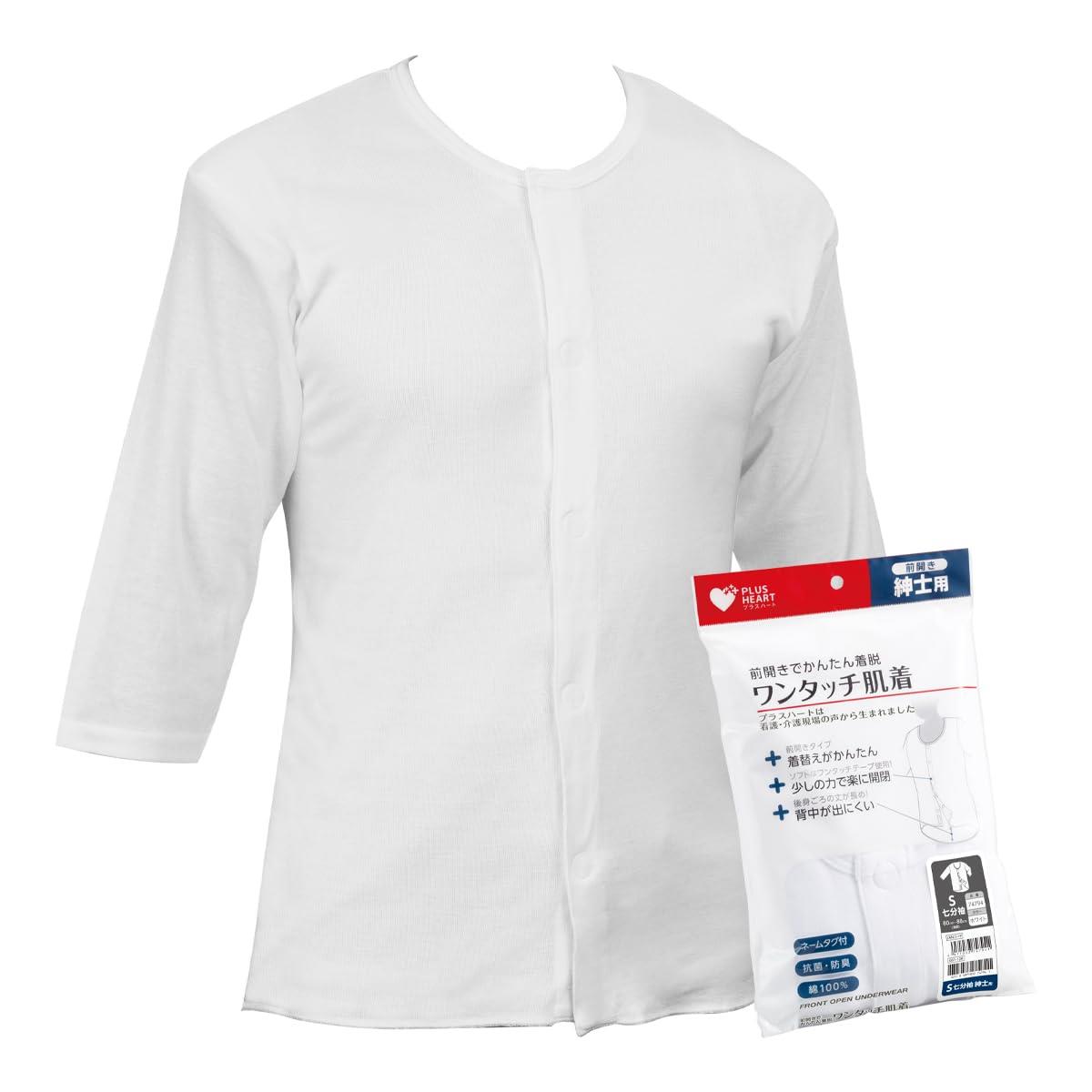 プラスハート ワンタッチ肌着 前開き 紳士 1枚入 7分袖 S ホワイト 綿100% 74794