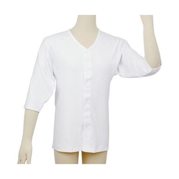 【送料お得・まとめ買い×3個セット】グンゼ 紳士 7分袖クリップシャツ 前あき ホワイト LL 介護用肌着