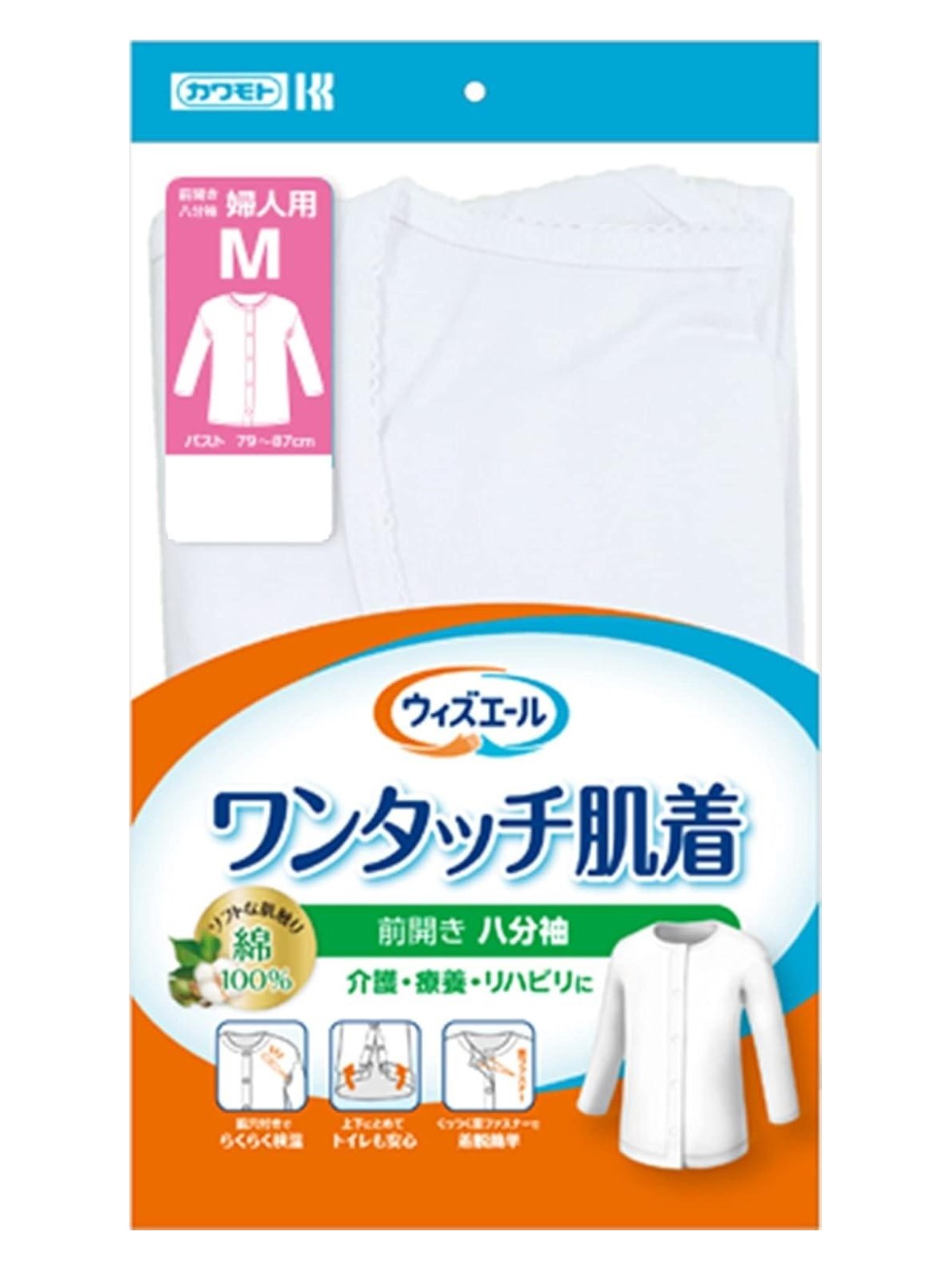 【送料無料】ウィズエール ワンタッチ肌着 八分袖 婦人 M 039-122130-00