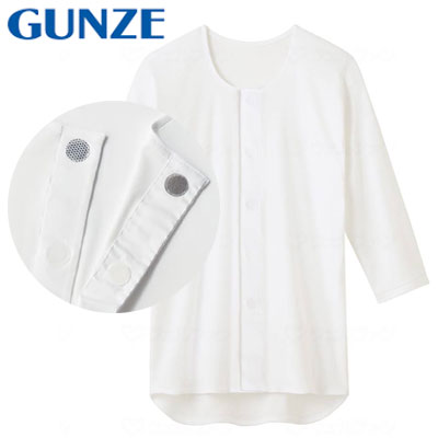 【送料込】グンゼ 紳士 7分袖ワンタッチシャツ 前あき ホワイト LL 介護用肌着 1個