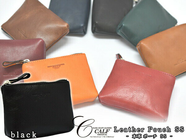 ■CALF カーフ 本革 レザーポーチ SSサイズ ブラック black 日本製 ミニサイズ 皮革 小銭入れ ポケット 黒 送料無料
