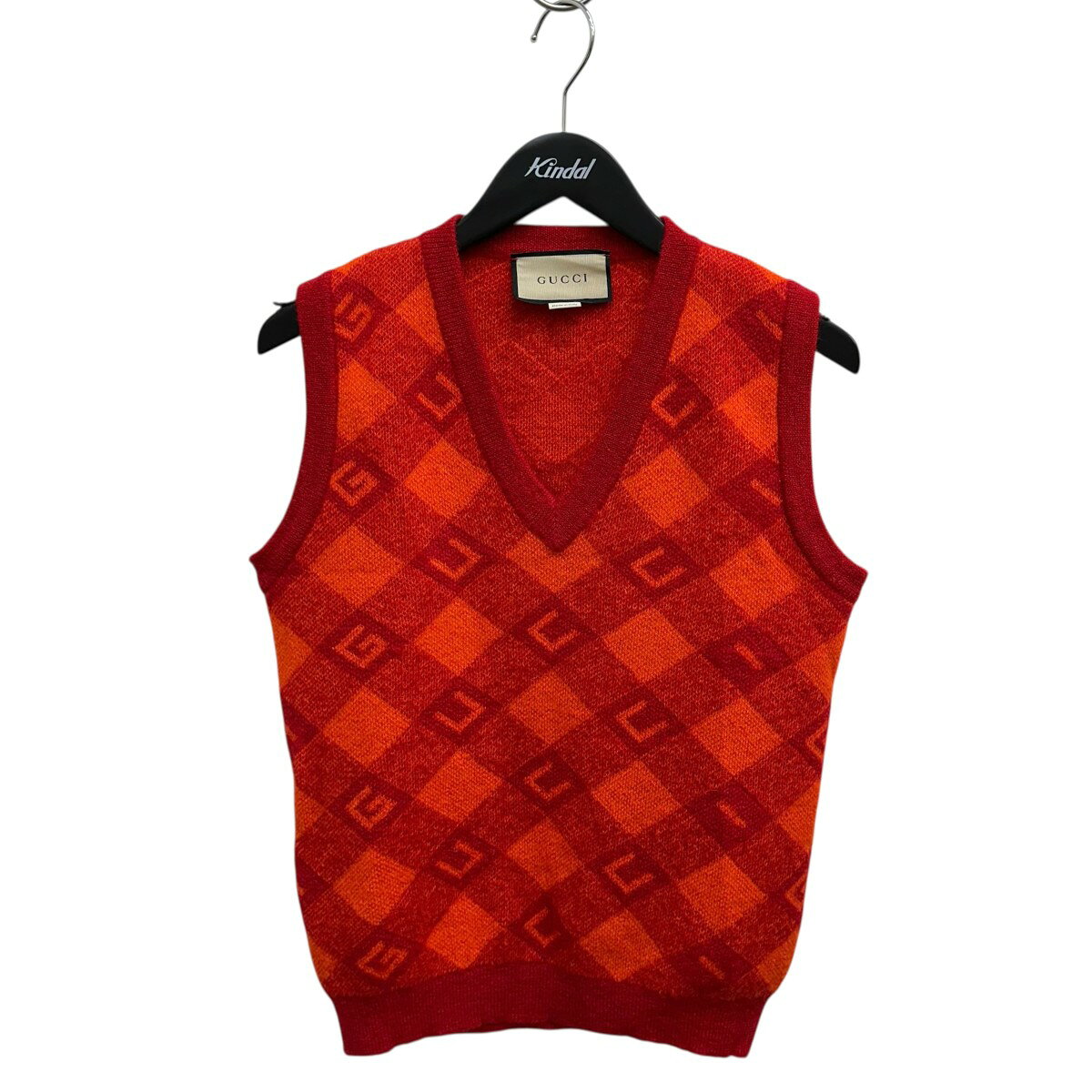 【中古】GUCCI ニットベスト 650397 レッド×オレンジ サイズ:XS 【231125】(グッチ)