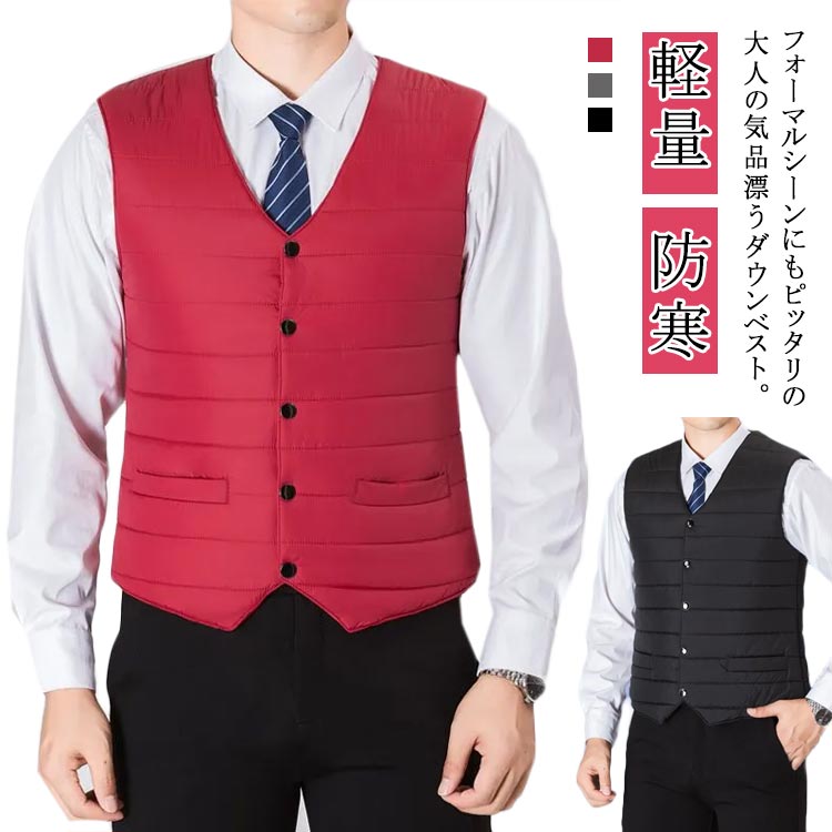 軽量 アウター ジレベスト メンズ ノースリーブ 中綿ベスト ダウンジャケット スリム ポケット付き インナーダウン ダウンベスト