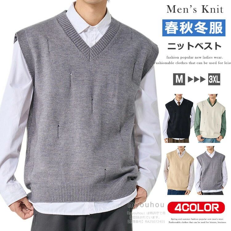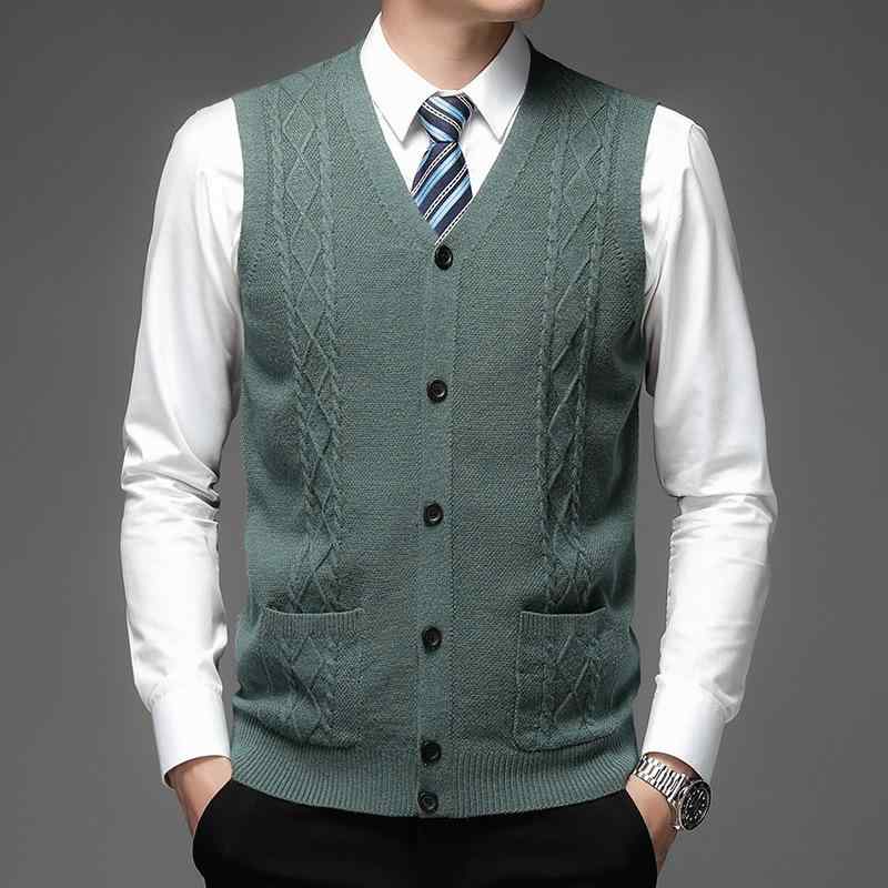 ベスト メンズ おしゃれ ウール ニット Vネック 前開き シンプル シニア 50代 春秋冬
