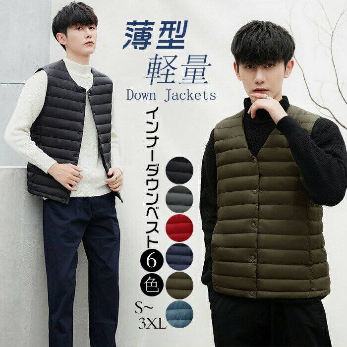 ビジネス オフィス 暖かい 軽い 薄手 vネック ポケット 前開き ライトベスト インナーベスト スーツベスト 中綿 ベスト メンズ
