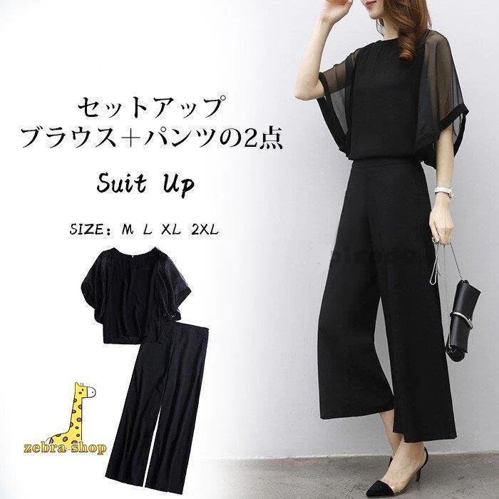 セットアップ ワイドパンツ レディース きれいめ 2点セット トップス シフォンブラウス 夏