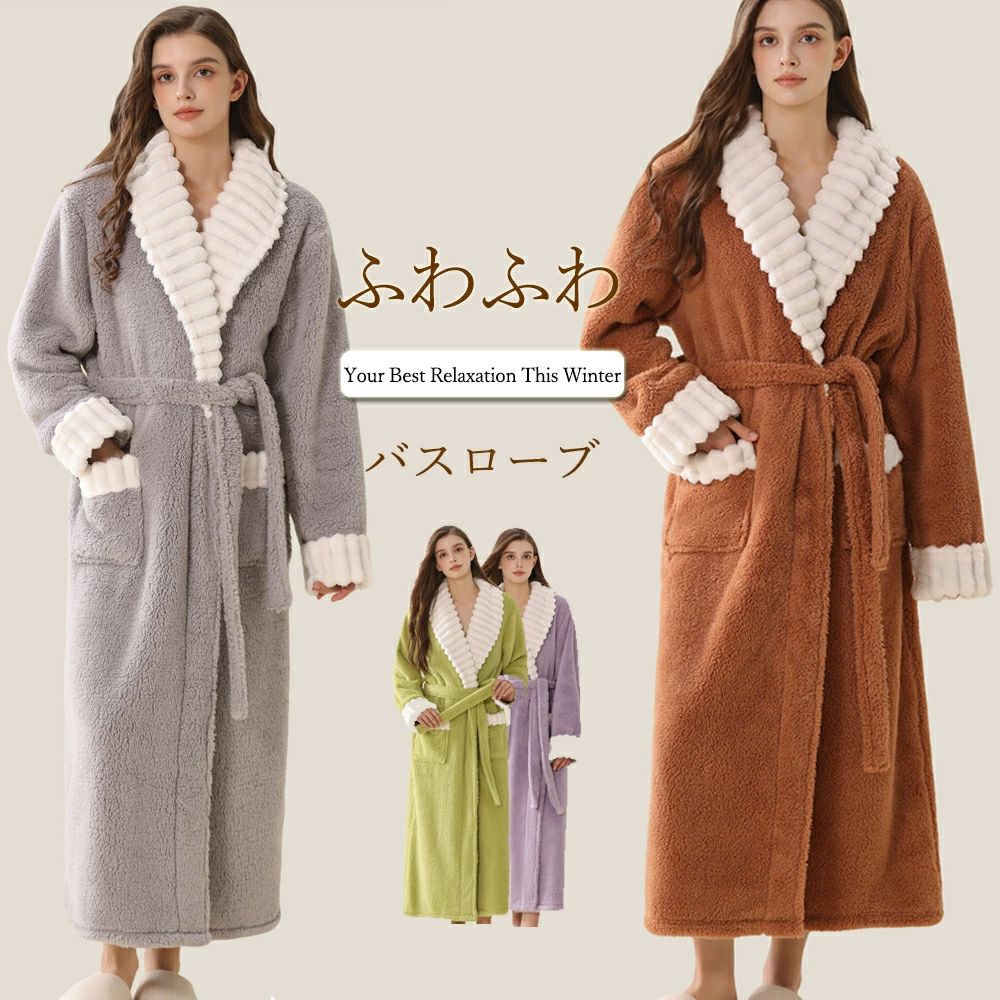 バスローブ メンズ レディース ルームウェア おしゃれ かわいい フード付き もこもこ ガウン 秋冬 ロング 大きいサイズ