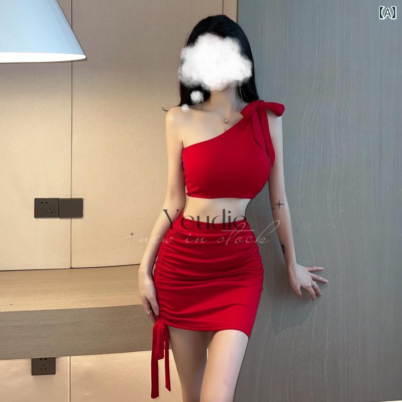 ランジェリー レディース 女性用 ボディーコン 可愛い セクシー コスチューム ポリエステル 吊りスカート ニット ワンピース セット2